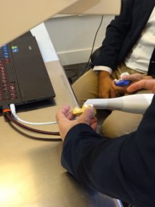 El paciente se posiciona en el sillón dental y se protege con delantal plomado y collar tiroideo para minimizar la exposición a la radiación.