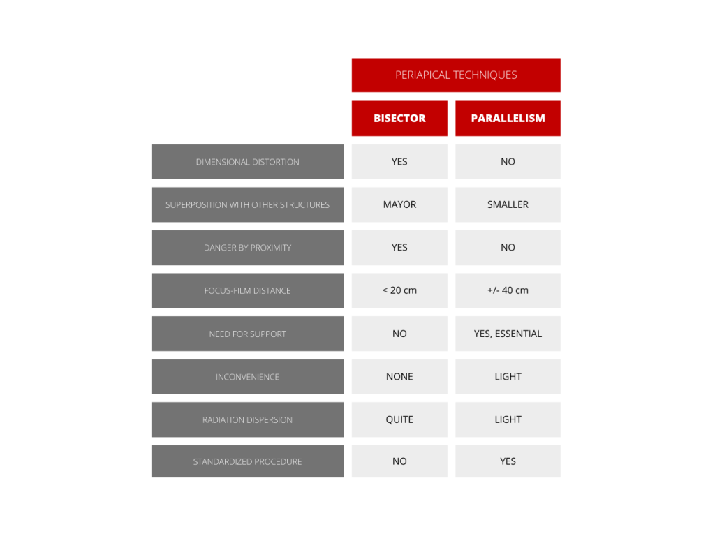 Consiste en colocar el sensor radiográfico paralelo al eje longitudinal del diente o implante, mientras que el haz de rayos X incide perpendicularmente sobre ambos.